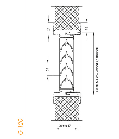- startend bij 105 mm hoogte en minimum 200 mm breed